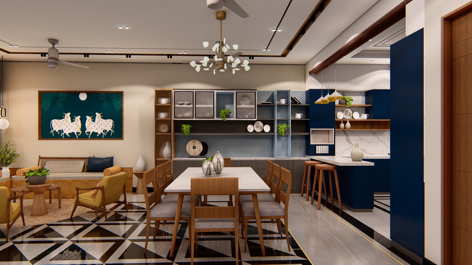 Through intricate detailing and visionary concepts, we've crafted interiors that redefine luxury living. The 3D views of the Villa Greater Noida project showcase our commitment to precision and innovation, offering a glimpse into a world of sophistication and style. With Studio Archodox, experience the allure of bespoke design as we bring imagination to life, creating spaces that inspire awe and elevate living standards in Greater Noida's prestigious villa community.